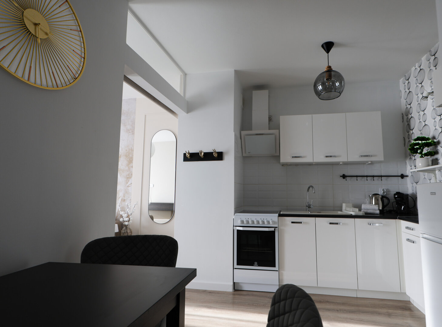 Apartament posiada również oddzielną, w pełni wyposażoną kuchnię, dzięki której możesz przygotować własne posiłki i poczuć się jak w domu. To doskonałe rozwiązanie dla osób ceniących niezależność i wygodę.